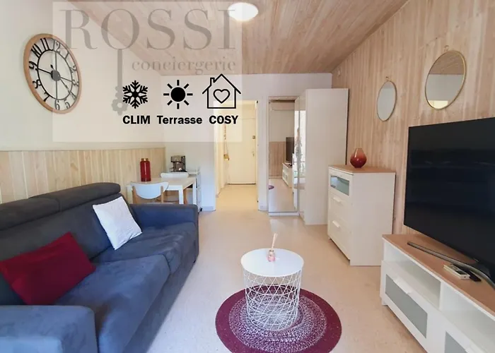 Το Studio Cosy Pour 2 Climatisation Wifi Au Point Zero - Rossiconciergerie - Linge Inclus Λα Γκραντ-Μοτ 22 τ.μ. Διαθέτει βεράντα και απέχει 25 λεπτά με τα πόδια από την Παραλία Sunset.